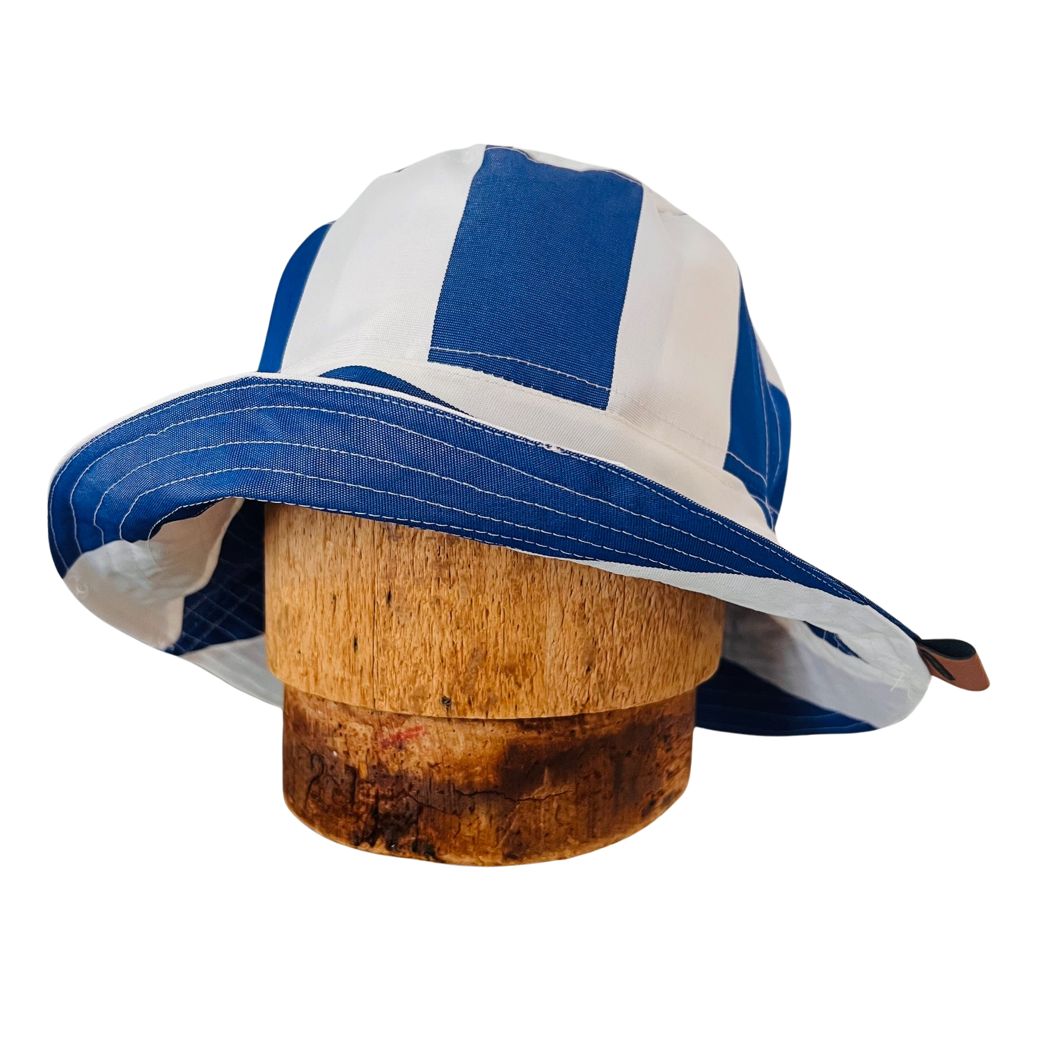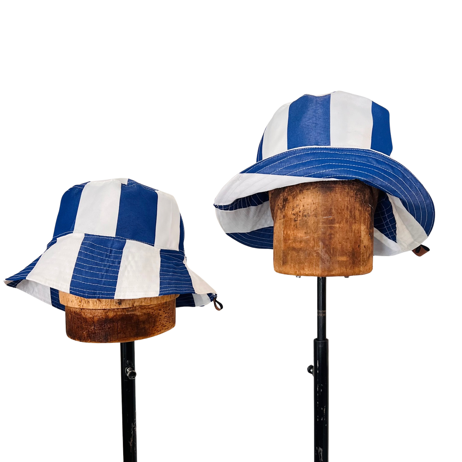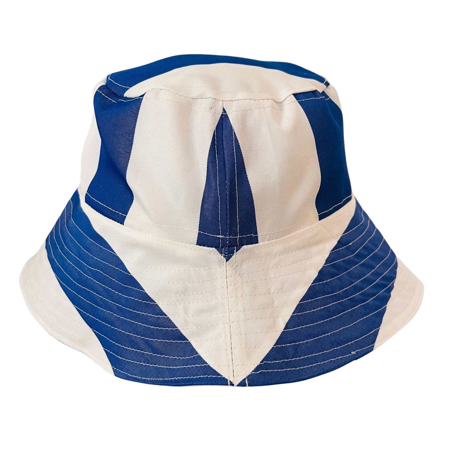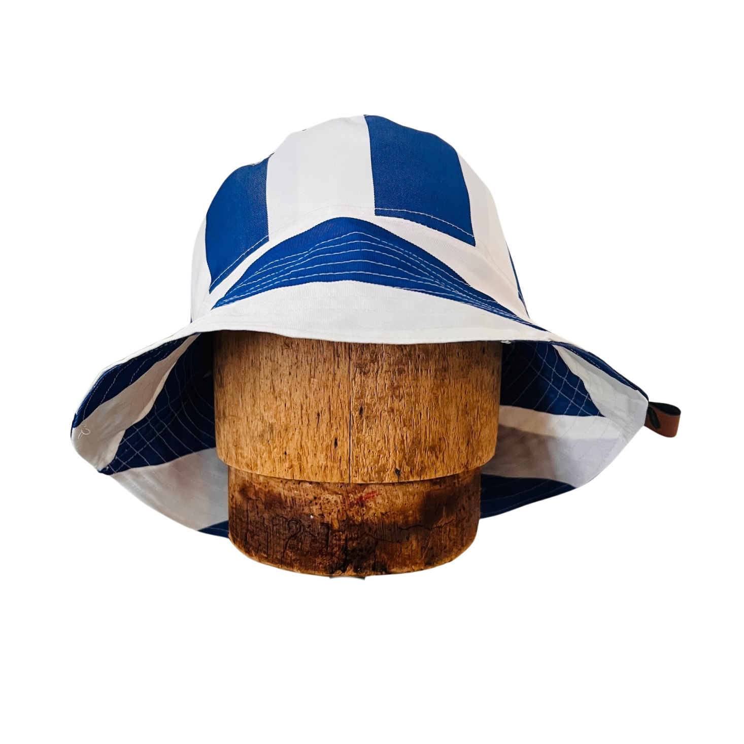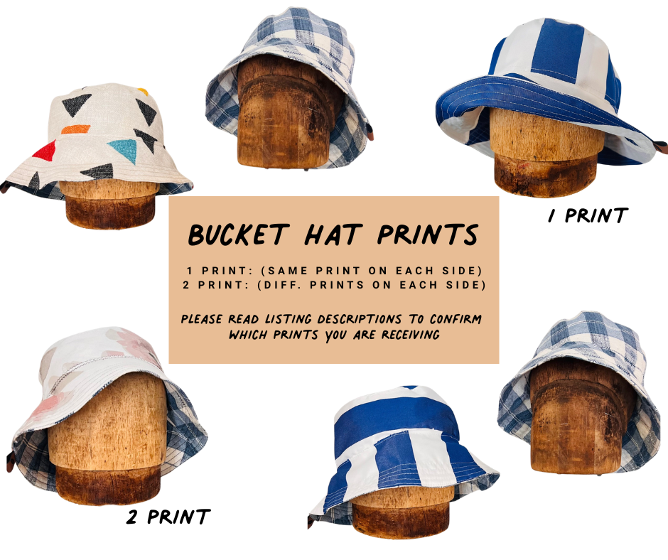 North Ferry Hats is offering a small batch of hand-crafted Bucket Hats for Spring 2026. All of our Bucket Hats are made using Upcycled fabrics. Featured hat is a 1 Print Waterproof Bucket hat with Blue and White Striped pattern on both sides.